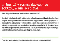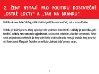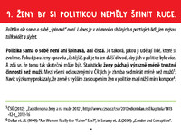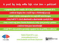 - v populaci žije 50 % mužů a 50 % žen, v politice je žen pouhých 20 %