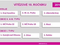 V kategorii krajů se na prvním místě umístil Kraj Vysočina, na druhém hlavní město Praha a na třetím Liberecký kraj. V kategorii obcí II. a III. typu (a městských částí hlavního města Prahy) byla nejlepší městská část Praha 22, následována městskou částí Praha 18 a statutárním městem Most. V kategorii obcí I. typu zvítězila obec Kamýk nad Vltavou, na druhém místě se umístila obec Otice a na třetím město Ralsko.